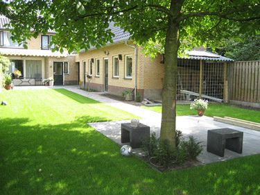 Deze tuin in Heeze is 34 meter diep. "De oude tuin was een allegaartje geworden", zegt de bewoonster. "Er zat geen enkele structuur meer in en het was geen mooie tuin. Daarom had ik ook helemaal geen zin om nog in de tuin te werken. Nadat Hans de tuin opnieuw heeft aangelegd, zijn we dik tevreden en genieten we van de tuin. Er moet alleen nog beplanting in, maar daar wachten we even mee tot we precies weten wat we willen."